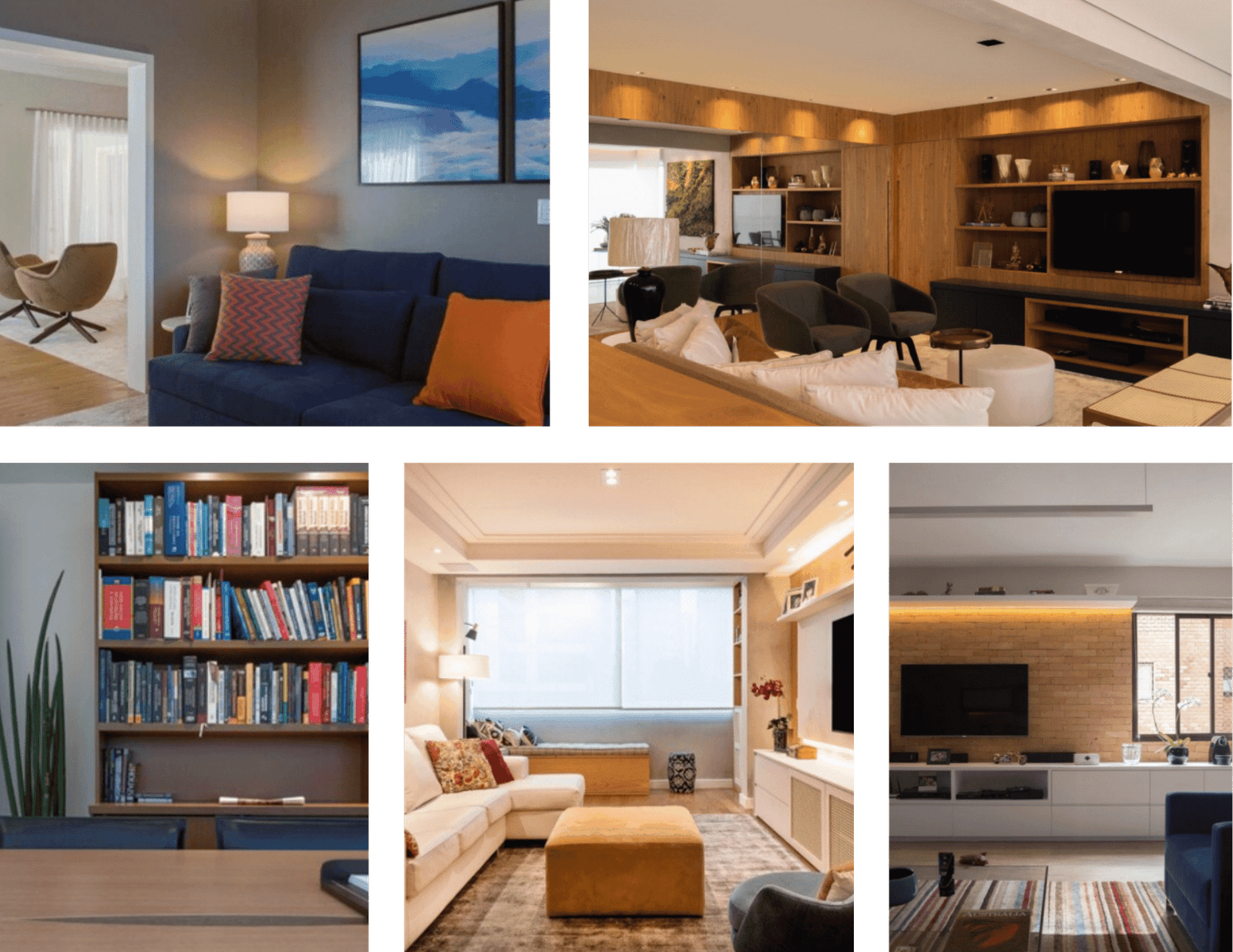 Projetos de decoração mais rápidos, mas não menos personalizados, propomos soluções rápidas, criativas e funcionais e que impimem personalidade Apresentamos 3D, lista de produtos e fornecedores e imagens de referências.